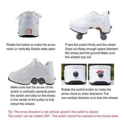 LDTXH自動歩行靴インビジブルローラースケート、2 in 1パルクールシューズ/インラインローラースケート靴、複列クワッドローラースケート屋外スポーツキック