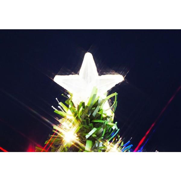 クリスマスツリー 葉先が光るファイバーツリーに赤・青・緑のマルチLED球30個をセットしたサイズ 直径70cm×高さ150cm梱包