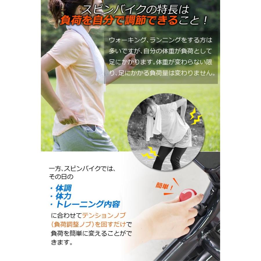 商品情報 自宅で簡単・安心トレーニングダイエット・トレーニング目的に!!ホイール重量15kgのミドルウェイトスピンバイク。 外で自転車に乗ることもなく安心・安全にトレーニングでき、ジムのバイクのようなエクササイズができる室内用のスピンバイク。サドルとハンドルの高さは調節可能で、推奨身長は150cm-180cmまで幅広くご使用いただけます。そして、トレーニングに欠かせないサイクルコンピューターを標準装備しております。 |