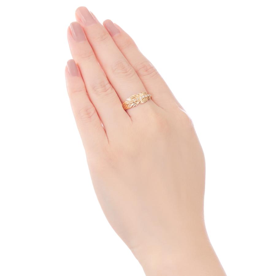 フェザーモチーフのボリュームリング。センターにセットされたダイヤモンドの煌めきがクールなアクセントに。インデックスリングとして着用するのもおすすめです。地金素材:K10Y
