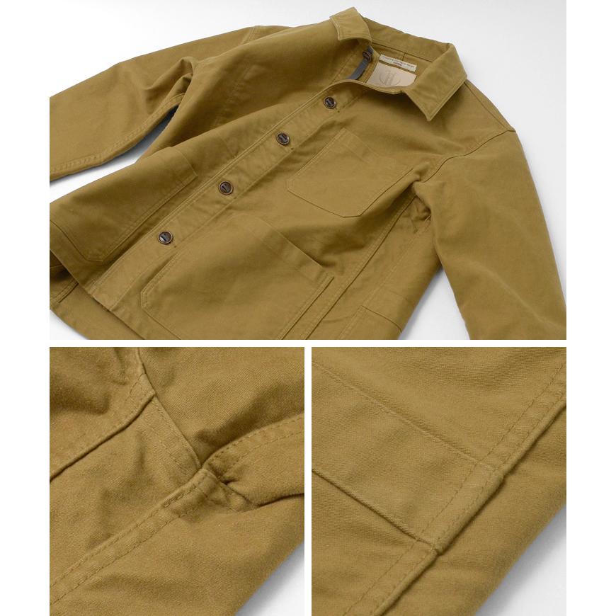 商品情報 長年着られるタフな別注カバーオール 当店で人気のJAPAN BLUE JEANS×ROCOCOシリーズに、モールスキンを採用したROCOCO別注カバーオールが登場。 ヴィンテージ物をベースにヘビーウェイトのモールスキン生地で制作した1枚。 ガッシリとした丈夫な作りながら、厚みのある滑らかな肌触りと上品さが魅力です。 また、高い技術で仕上げられた国内での確かな縫製が、安心感を与えてくれます。 暖かみのある上品なモールスキン 綿素材のなかでキャンバスやデニムよりも丈夫と言われる、綿100%のヘビーウェイトモールスキンを使用。適度な生地厚ながらも、高密度に織り上げることで起毛密度と強度を高めた仕上がりに。 毛足は短くすることで毛玉を防止し、なめらかで上品な風合いを演出しています。 レザーのようななほのかな光沢と滑らかな質感は、上品な雰囲気が漂います。繰り返し着用することで、色や生地感がこなれた風合いに変わっていく経年変化も楽しみの一つです。 *サイズ:S/M/L/XL(以下cm) *肩幅:46/48/50/52 *身幅:52/54/56/58 *袖丈:58/59/60/61 *着丈:67/69/71/73 *モデル着用:Mサイズ *カラー:キャメル、オリーブ、ネイビー |