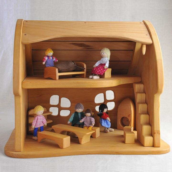 商品情報 その名のとおり、おとぎ話の世界にぴったりのかわいらしく不思議な雰囲気をもった木の家です。丸みを帯びた形と独特の曲線美が暖かみのある木の素材とマッチして、子どもたちを物語の世界へと誘ってくれます。子どもたちの想像力をかきたててくれる魅力あふれるおもちゃです。 ※この商品には家具や小物、人形等は付属されておりません。 ※この商品はラッピングサービスをご利用になれません。 メーカー:ノルベルト社(ドイツ) 規格:30×45×36.5cm(縦×横×高) ドイツの寒い地域で育った木を使用して木製品を製造しています。寒冷な地域で育った木は、木目が詰まって固く強いので、とても傷つきにくい製品となります。当初の自然の素材をそのまま生かしたおもちゃで想像力を刺激し子ども時代にたくさん遊んで幸せになってほしい。そのような願いを持って遠く離れたドイツで製品作りをしています。 |