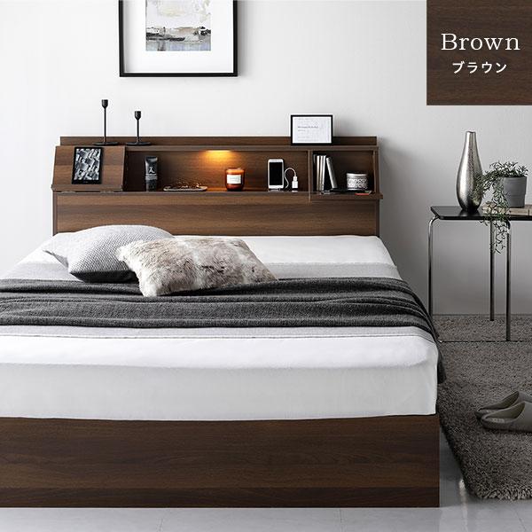 ベッド シングル ポケットコイルマットレス付き ブラック フラップ扉 照明付 収納付 棚付 宮付 コンセント付